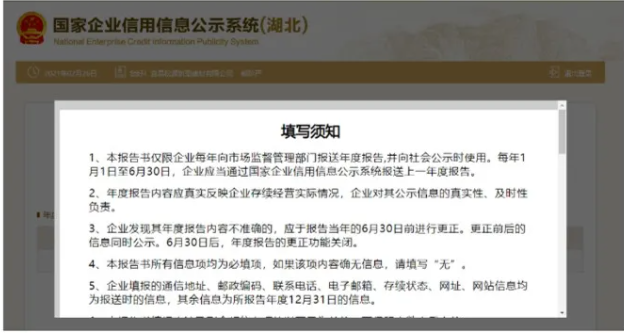 最后:2020年度年報工作已于2021年1月1日開始,截止于6月30日。凡在2020年12月31日前注冊的公司和個體,請在規定的時間內完成工商年報填報。超期不申報,公司列入異常!