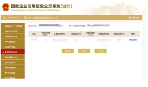 股東變更信息 進入股權變更頁面 可添加股權變更信息 也可刪除或者修改信息。