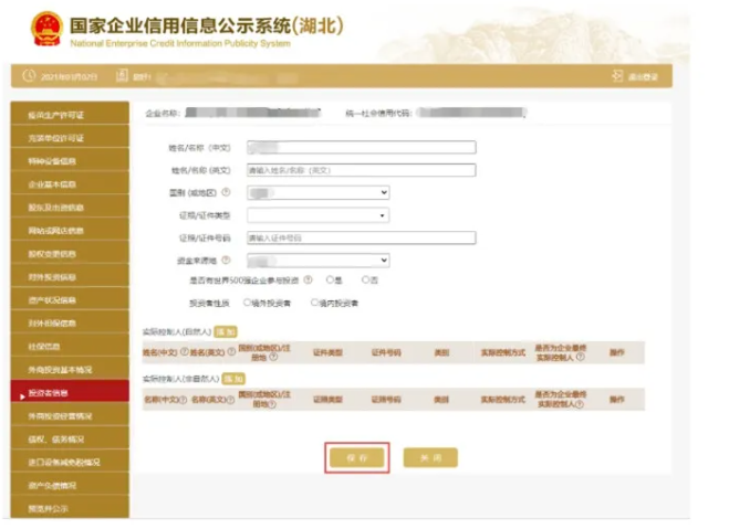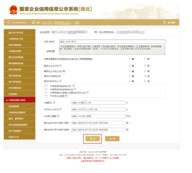 1 外商投資基本情況 進入外商投資基本情況頁面 填寫企業外商投資信息,并點擊保存。