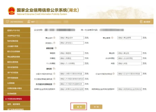 進入外商投資經營情況頁面 填寫相關信息 點擊保存。